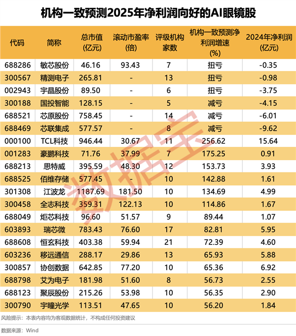 这些AI眼镜股预计2025年净利润向好