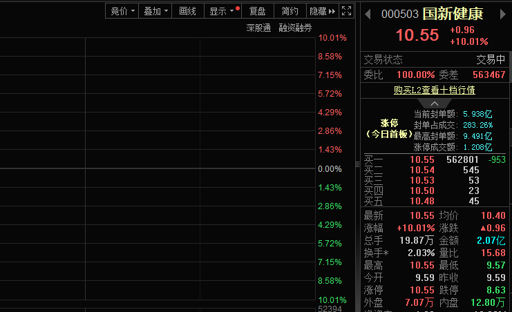1月9日,AI医疗概念股集体走强。个股方面,国新健康(000503)股价实现涨停。