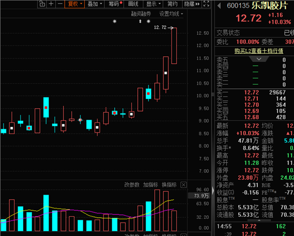 乐凯胶片近期股票连续两日涨停,2025年12月31日以来累计涨幅超过35%。公司股价大幅异动,主要由于商业航天概念炒作。资料显示,公司控股股东为中国乐凯集团,实控人为中国航天科技集团。