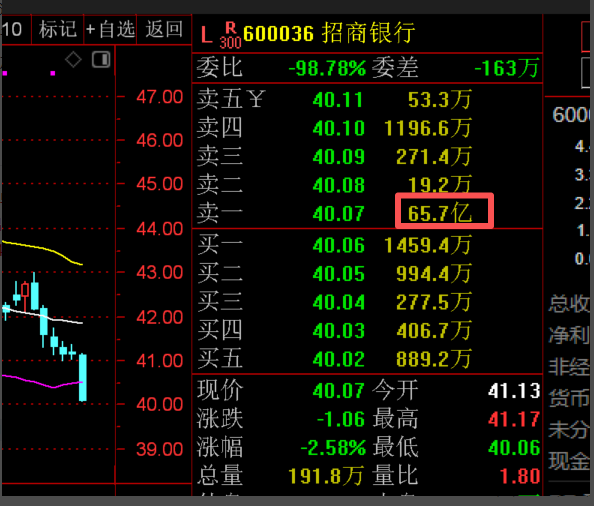 1月14日A股尾盘集合竞价多只权重股现巨额压单,其中招商银行压单金额超65亿元。与此同时,长江电力、中国中免、中国平安、紫金矿业、中国铝业、上汽集团、兴业银行压单金额均超10亿元。