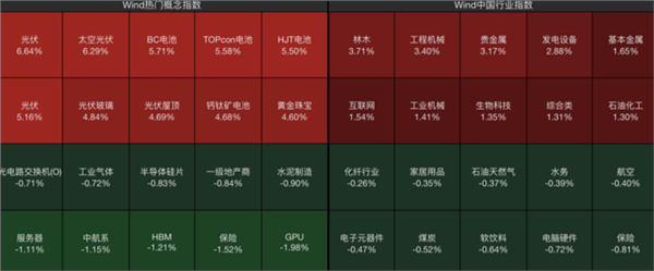 从板块来看,光伏板块走高,工程机械、贵金属、发电设备等板块涨幅居前;而保险、煤炭、电子元器件等板块震荡调整。