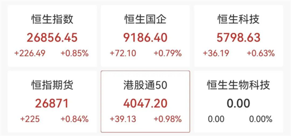 港股三大指数走高,阿里巴巴、理想汽车、京东集团等涨幅居前。