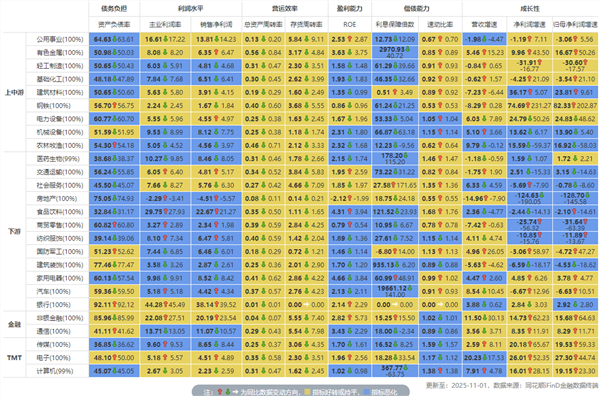 行业财务指标同比变动