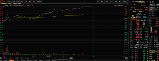 1月30日,光通信板块表现强势,概念股集体走强。其中,亨通光电开盘后稳步上扬,午后封住涨停。截至发稿,该股报价35.01元/股。