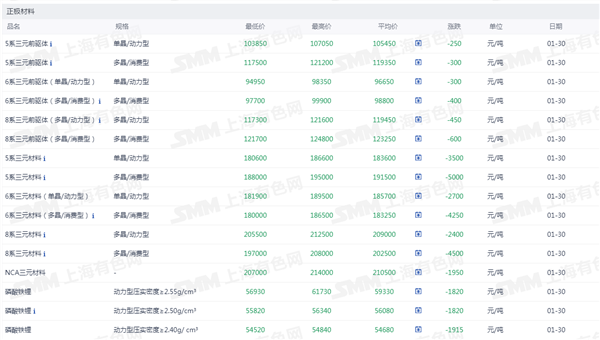 正极材料价格