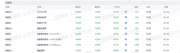 电解液价格