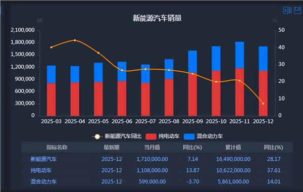 1月26日,公安部发布最新统计,截至2025年底,全国新能源汽车保有量达4397万辆,占汽车总量的12.01%。其中纯电动汽车保有量3022万辆,占新能源汽车保有量的68.74%。2025年新注册登记新能源汽车1293万辆,占新注册登记汽车数量的49.38%,与2024年相比增加168万辆,增长14.93%。