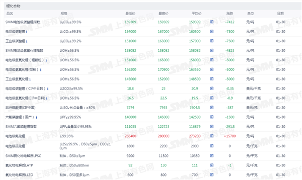 锂化合物现货价格