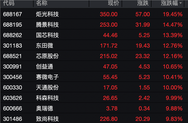 电子板块亦大涨,板块涨幅超过2%,板块内亦有多股涨停或涨超10%。
