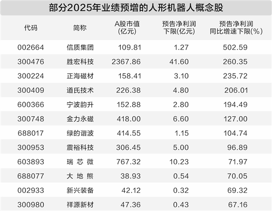 从已公布2025年业绩预告、快报的人形机器人概念股来看,按照预告净利润下限计算(无下限则取公告数值),2025年净利润同比增长(含扭亏为盈)的人形机器人概念股有35只。