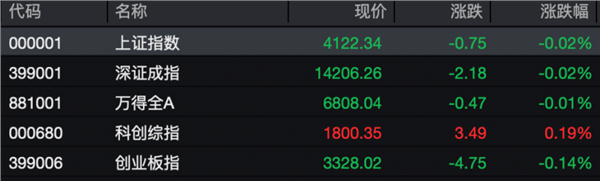 截至午间收盘,上证指数跌0.02%,深证成指跌0.02%,创业板指跌0.14%。