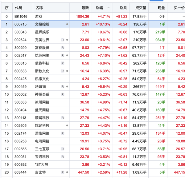 游戏板块普涨