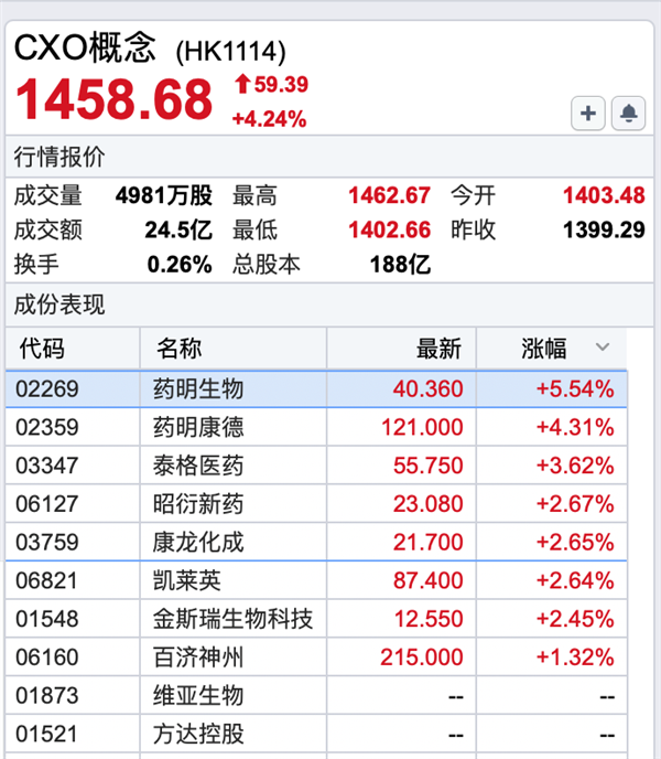 港股CXO概念大涨