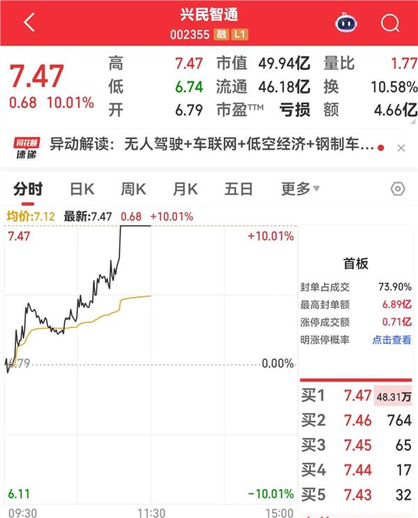 (原标题:002355,超48万手封单涨停!利好不断,自动驾驶板块逆市飙涨)