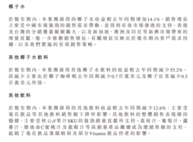 更值得警惕的是,即便作为营收支柱的椰子水品类,其增长动能也在2025年出现明显放缓。集团椰子水品类的收入增速从2024年的82.93%降至2025年的14.1%;旗下主力品牌if也未能独善其身,增速由74.67%大幅放缓至27.48%。