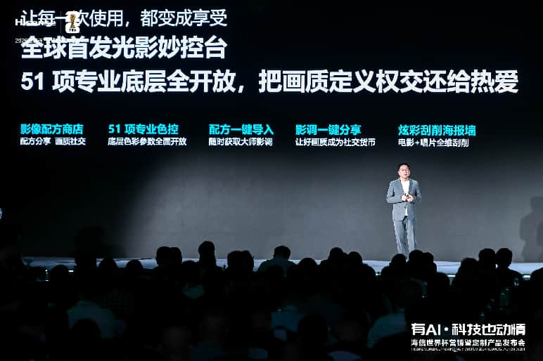 海信UX2026款搭载行业首创光影妙控台,内置大师级调色方案可一键复刻专业画质,更开放 51 项核心参数支持资深玩家精细调节,更有调色配方商店,未来将汇集导演与专业调色师的大师方案,支持一件复制,普通用户也能轻松调出专业级画面,解锁画质调试互动新体验。