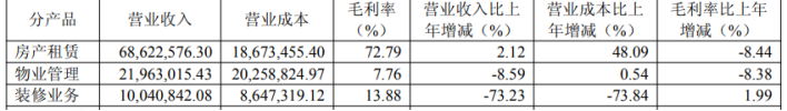 虽冠以“能源”二字,但汇通能源其实是一家与房地产紧密关联的企业。2025年,汇通能源仍以商业地产租赁、物业服务为核心基本盘,同时收缩了低毛利装修业务,导致营收有所下滑。划分产品看,2025年,房产租赁实现营收6862.26万元,同比增长2.12%;物业管理、装修业务分别实现营收2196.3万元、1004.08万元,同比分别下滑8.59%、73.23%。