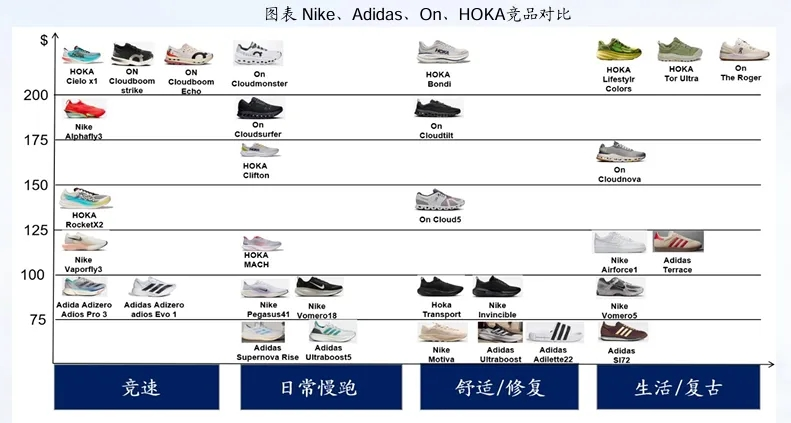 然而,跑步市场的竞争日趋激烈。耐克在此前财报中明确表示要“夺回跑步市场”,HOKA、On等专业跑步品牌也在加速抢夺市场份额。国泰海通证券在一份研报中指出,阿迪达斯在高端竞速领域(ADIZERO系列)表现极佳,但在大众慢跑领域的竞争力稍弱,存在市场短板。
