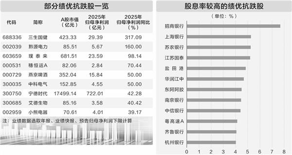 上述35只抗跌绩优股中,多只股票分红力度突出、高股息特征明显。据数据宝统计,截至3月24日收盘,23只股票股息率(近12个月)逾2%,其中招商银行、上海银行和苏农银行等股息率均超过5%。