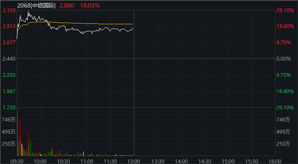 港股通标的股中,中铝国际港股大涨,盘中涨幅一度超过29%,后涨幅收窄。