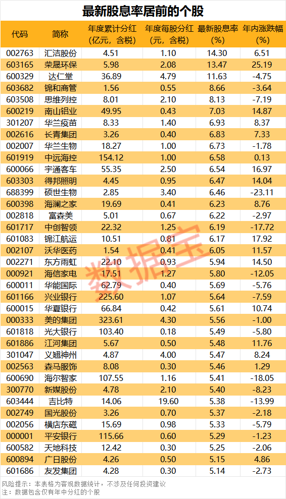 (原标题:大手笔!超高股息率个股曝光,这3股超10%)