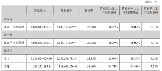 同时,为拓展全球产能布局,公司加速推进海外锂电池隔膜生产基地建设,相关投入导致当期成本及费用显著增加。报告期内,公司销售、管理、研发及财务四项费用均出现不同程度的增长,共计9.25亿元,同比增长53.15%。