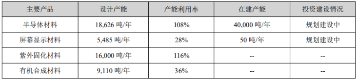 飞凯材料表示,公司根据不同板块的下游需求动态调整产能配置。年报中的产能利用率是按照产品板块进行汇总填报的,并非单一产线的独立数据,因此不同板块之间存在差异属于正常情况。具体来看,液晶材料的产能布局周期较长,目前尚未达到满产或接近满产的状态,因此产能利用率相对偏低;而紫外固化材料中的光纤涂料、汽车内饰件涂料及功能膜涂料等正处于产能释放阶段,产能利用率较高。